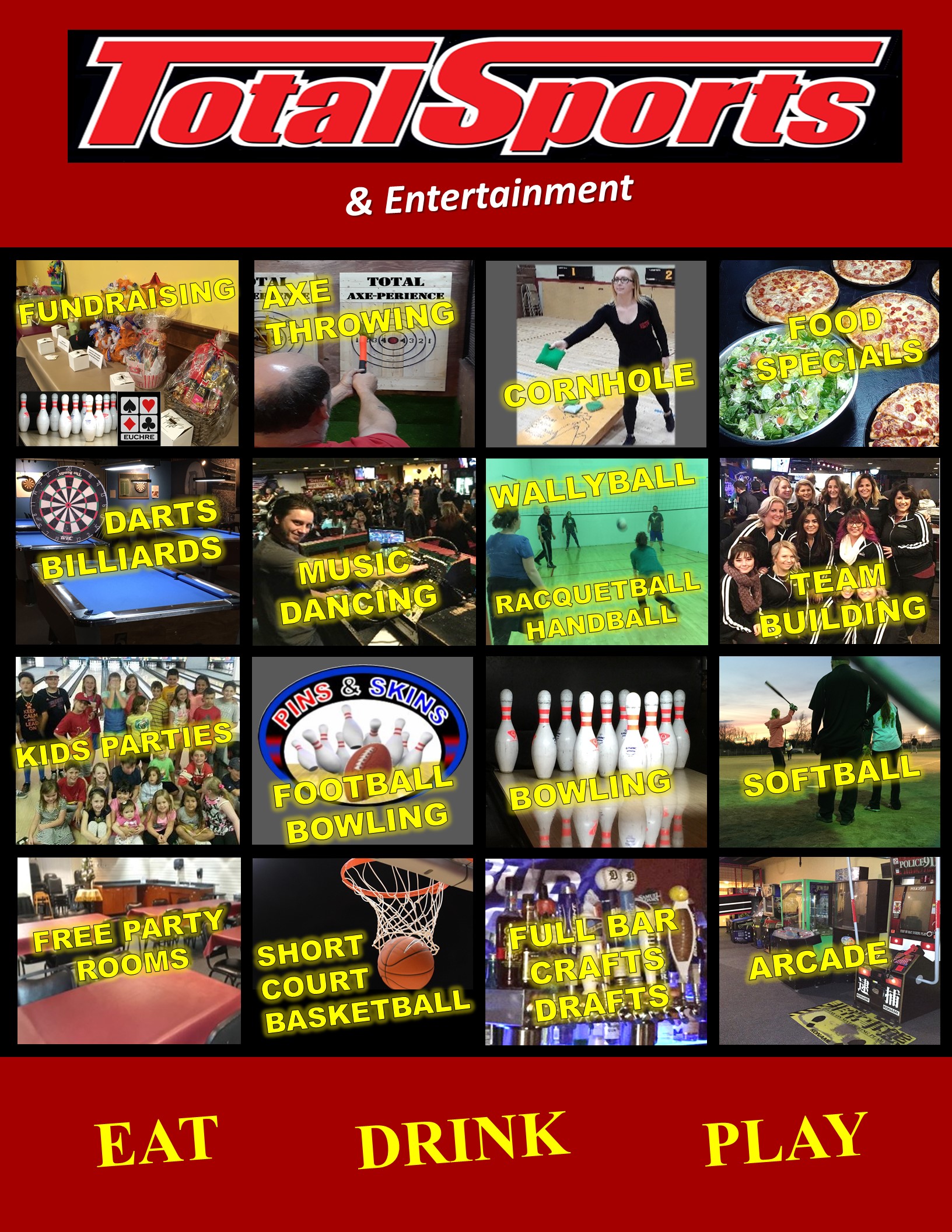 Total Sports is a family entertainment center. We promise to give priority to your private party, fundraiser, or league!
